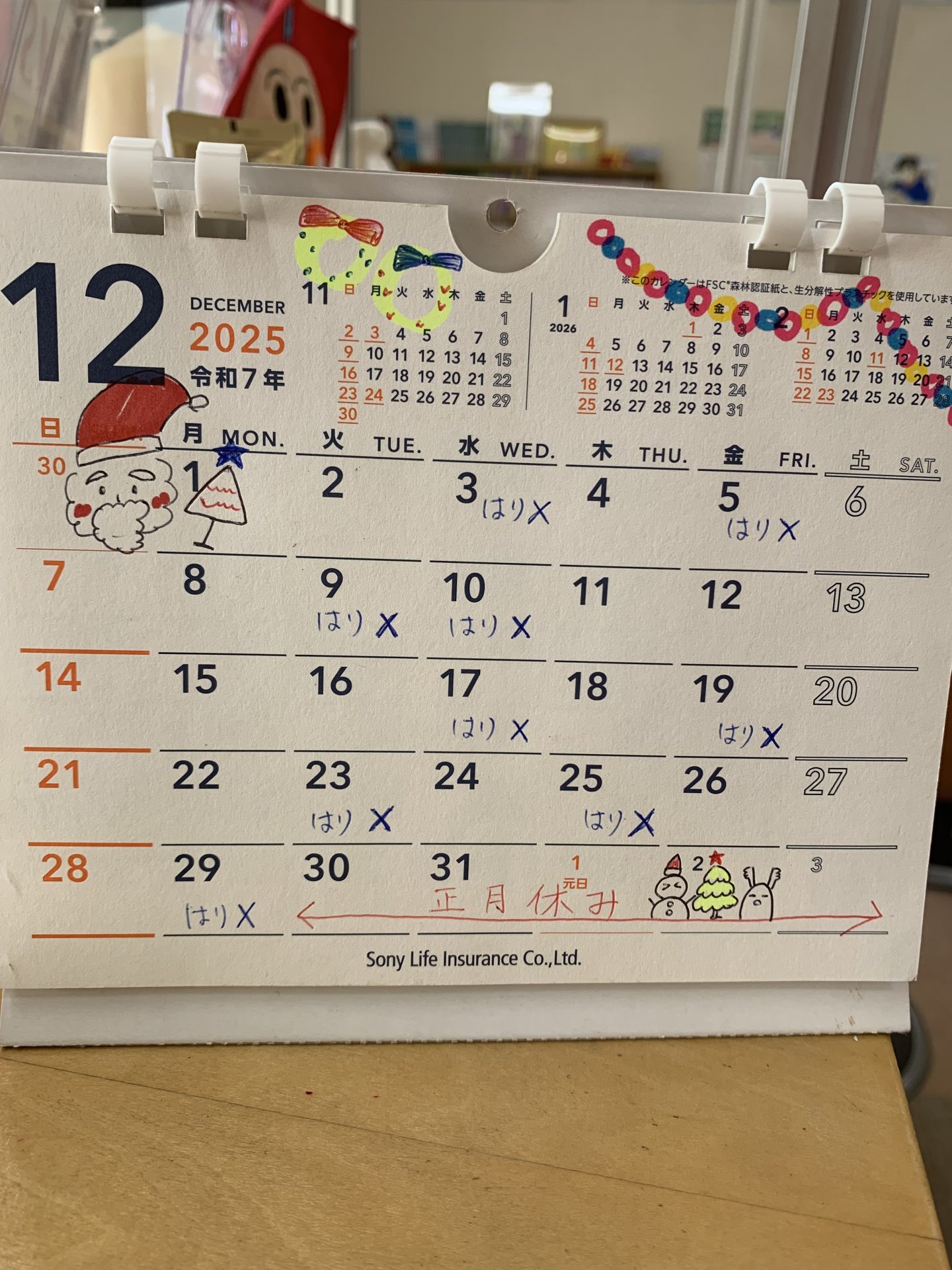 12月のカレンダーです、